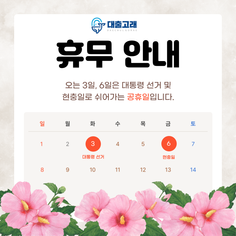 ● 휴무 기간 : 6월 3일 (화), 6월 6일 (금)
